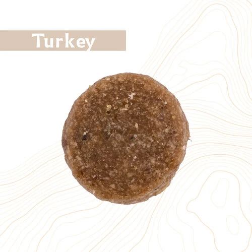 Putenfleisch 58% (frisches Putenfleisch: 20%), Kartoffeln, Geflügelfett, Erbsen, Zuckerrübenschnitzel, Lachsöl, Bierhefe, Karotten, Äpfel, Vitamine und Mineralstoffe, Ingwer, Liebstöckel, Thymus, Petersilie, Chicorée, Dill, Rosmarin, Yucca schidigera, Glucosaminsulfat, Chondroitinsulfat