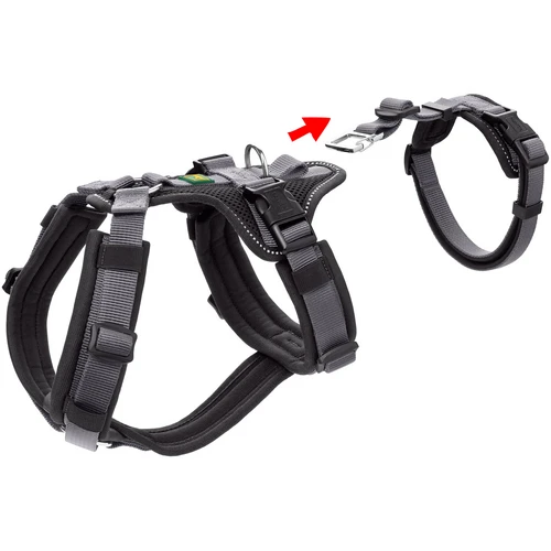 - Bequemes Anlegen des Geschirrs mit Schnappschnallen